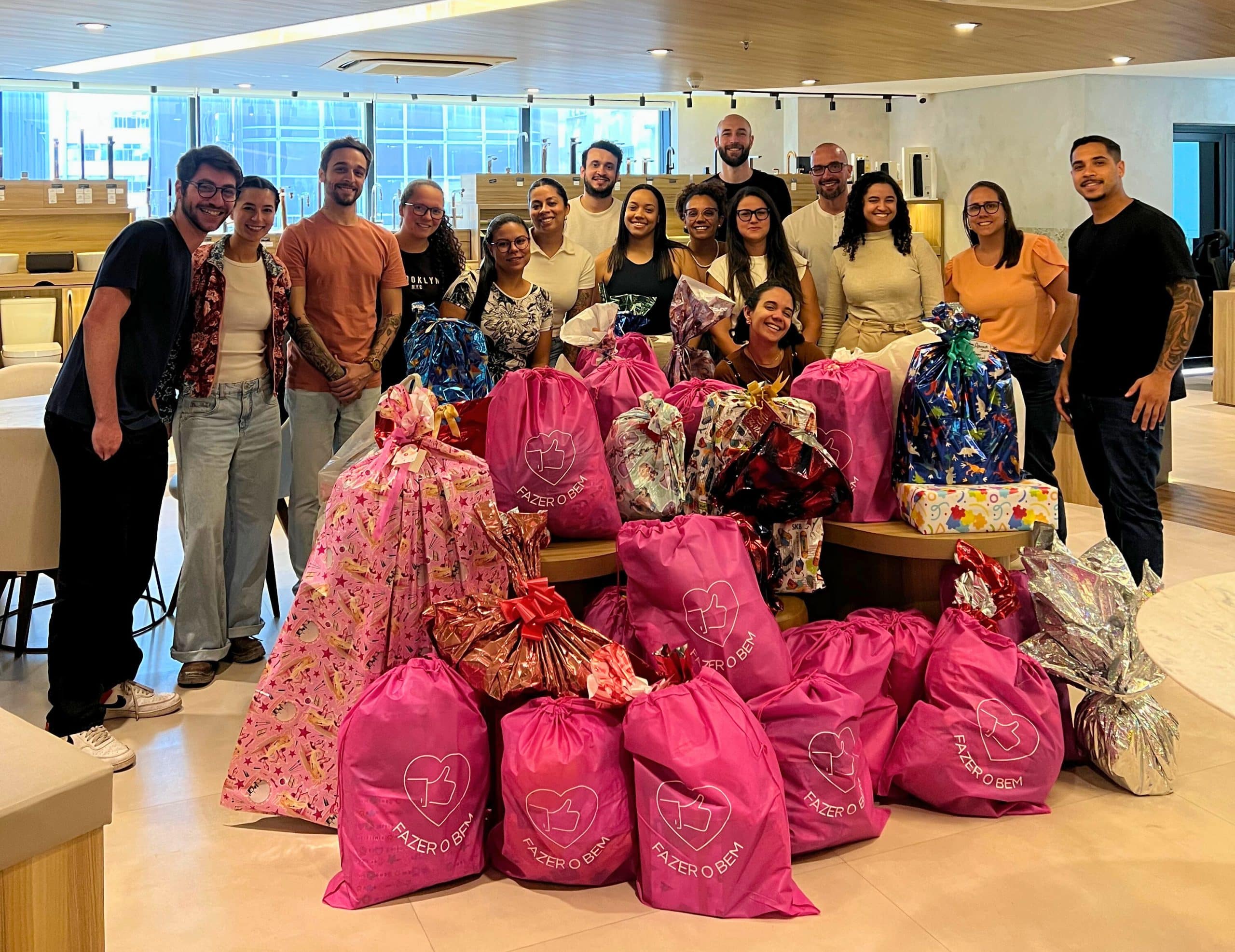 Neste ano, nossos colaboradores se engajaram de maneira exemplar na adoção de 196 cartinhas de Natal, levando presentes a crianças atendidas pela ONG NAIA e colocando em prática, de forma genuína, o nosso valor de Fazer o Bem. Cada ação foi marcada por cuidado, empatia e solidariedade, refletindo o esforço coletivo em transformar desejos em realidade e espalhar esperança.